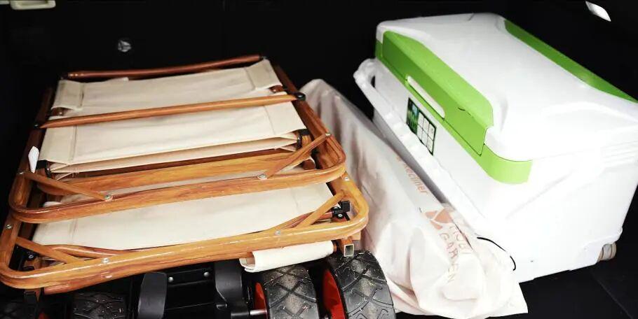 我这趟带了两把折叠椅、一张桌子、一个保温箱、一顶帐篷等等——全塞进去了。